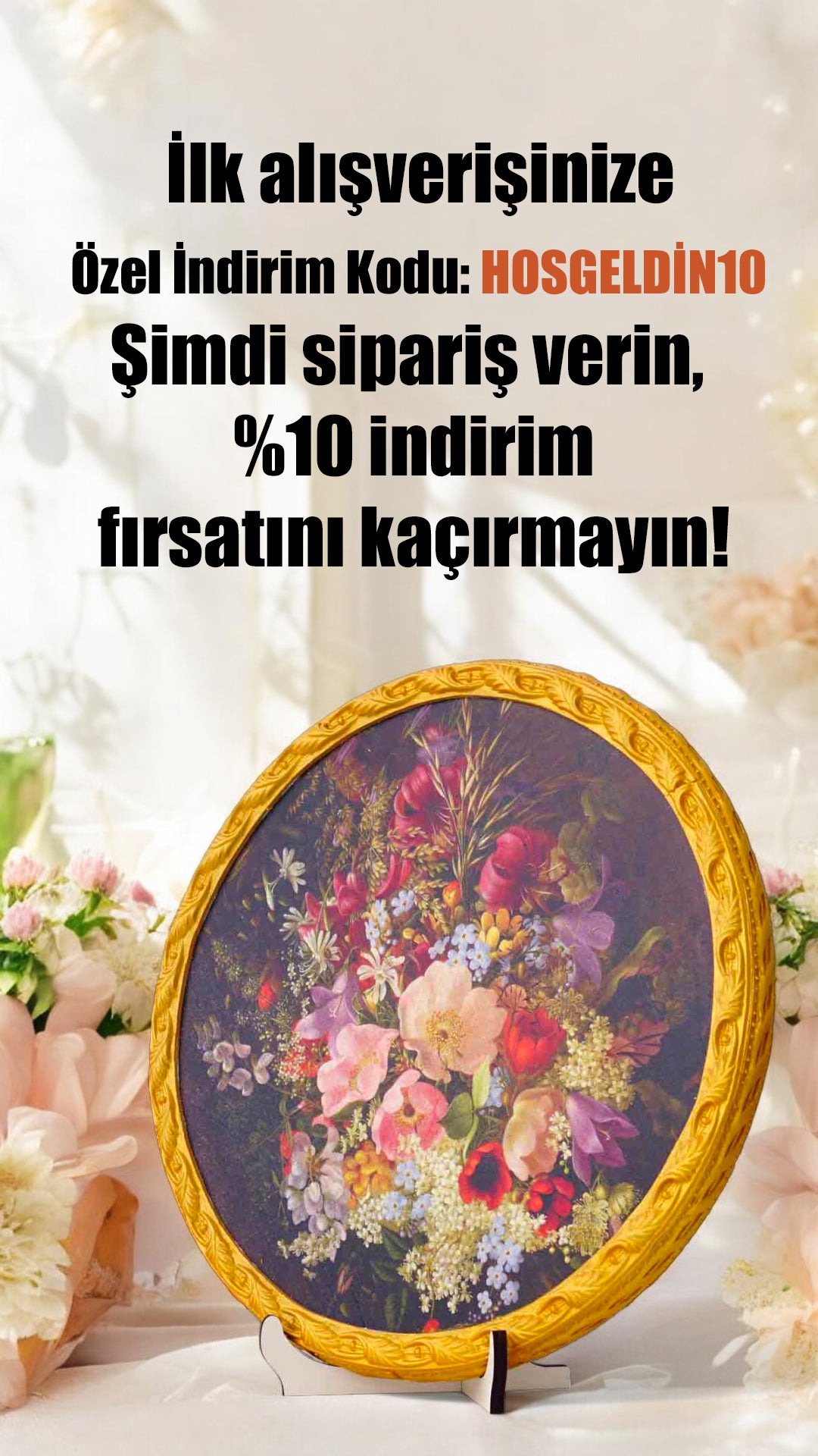 30 cm Çapında Kenarları İşlemeli Altın Yaldızlı Dekoratif Sunum Tepsisi ve Duvar...