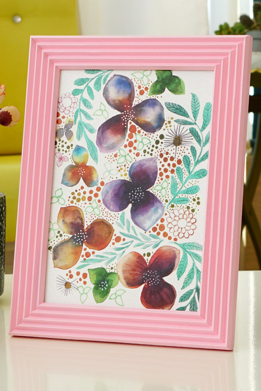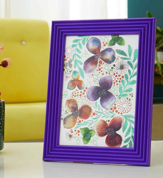 Mor Renk El Yapımı Çizgili Ahşap Fotoğraf Çerçevesi 15x21 cm