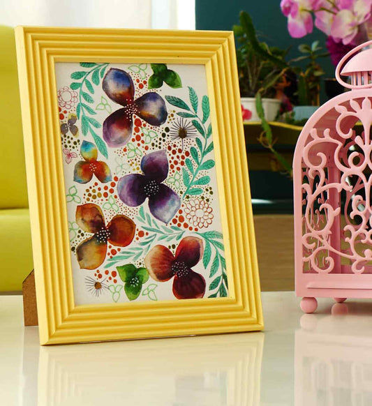 Açık Sarı El Yapımı Çizgili Ahşap Fotoğraf Çerçevesi 15x21 cm