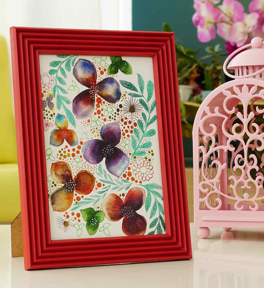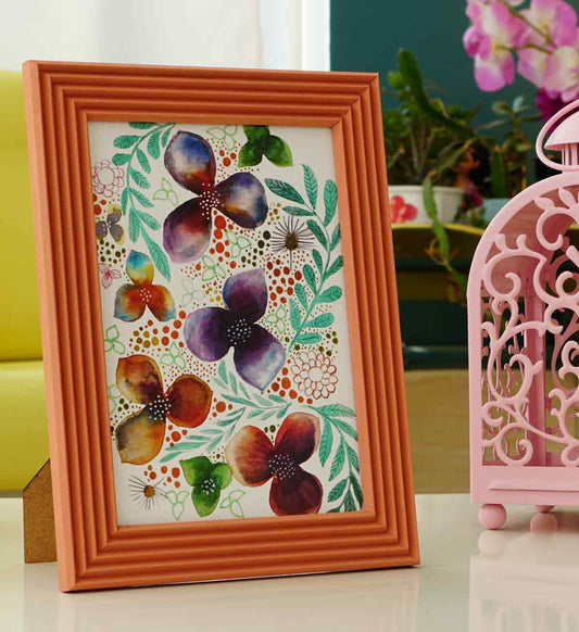 Mercan Rengi - El Yapımı Çizgili Ahşap Fotoğraf Çerçevesi (15x21 cm)