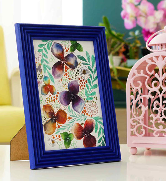 Okyanus Mavisi - El Yapımı Çizgili Ahşap Fotoğraf Çerçevesi (15x21 cm)