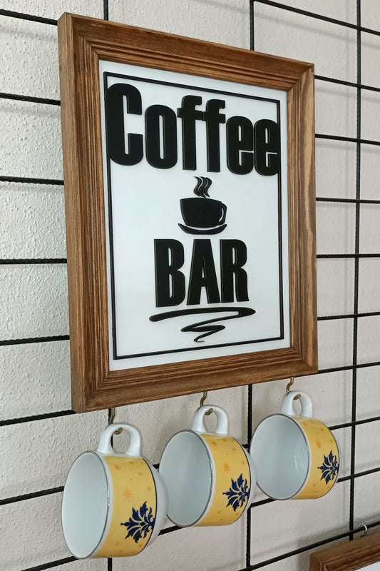 Rustik Ahşap Coffee Bar Tablosu ve Kupa Askılığı